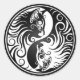 This unique yin yang design features two stylised kittens. The faces of the two cats appear in the large teardrops of the yin yang with long flowing lines tapering up and down to the two tips. This stylish kitten design is a fun and unique example of this symbol for the balance of nature.