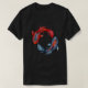 I give wanted to give this a 4 instead of a 5 because these Basic DARK T0shirts run unexpectedly SLIM or Narrow. Which is great if you do not have a potbelly, but I have a paunch. It isn't the shirt's fault that I've got a beer belly. The design and shirt itself is a quality cotton shirt. The color is more of a deep purple, but still a very pretty color. The Basic DARK T-shirts run a bit SLIMMER than the Basic Ts. The neck is a fraction narrower (or seems to be narrower) also. I'm a paunchy middle-aged woman and my neck is 12 inches (31cm) thick and the neckline fell about the same as in the photo of the man, and I had the desire to tug it a bit. So if you're a thick necked man or like loose shirts, be aware these are slimmer shirts. Once I get rid of my lockdown paunch it'll look great. The shirt washed well in cold water with no apparent bleeding. We don't have a dryer, so it hung dry. Did not shrink. Love the colors and the design. The design looks smaller on my shirt than it does on the model on-line. But still, it looks good on the shirt. The printing looks as it does on the model, just the size seems fractionally smaller. Washed garment in cold water, hung dry and design appeared unaffected.