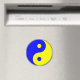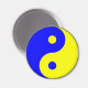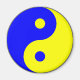 Yin Yang Magnet. This magnet is decorated with a blue and yellow Yin Yang symbol. "In Taoist philosophy, yin and yang arise together from an initial quiescence or emptiness and continue moving in tandem until quiescence is reached again. For instance, dropping a stone in a calm pool of water will simultaneously raise waves and lower troughs between them, and this alternation of high and low points in the water will radiate outward until the movement dissipates and the pool is calm once more. Yin–yang, thus, are always opposite and equal qualities. Further, whenever one quality reaches its peak it will naturally begin to transform into the opposite quality: grain that reaches its full height in summer (fully yang) will produce seeds and die back in winter (fully yin) in an endless cycle" - Wikipedia. A great gift idea.
