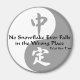 The yin yang, symbol of Tao, with the Zen proverb "No Snow Flake Ever Falls in the Wrong Place".
