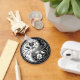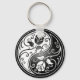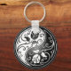 This beautiful yin yang design features two stylised tribal roses. Intricate black and white swirls decorate both sides of this traditional symbol creating a delicate pattern. The two flowers flow from the bottom of the teardrop on either side with leaves growing from the stems. This unique yin yang makes a stunning and stylish keychain design.