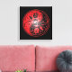 This beautiful yin yang design features two stylised tribal roses. Intricate red and black swirls decorate both sides of this traditional symbol creating a delicate pattern. The two flowers flow from the bottom of the teardrop on either side with leaves growing from the stems. This beautiful rose design is a unique take on the symbol for the balance of nature.