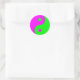 Yin Yang Sticker. This sticker is decorated with a green and magenta Yin Yang symbol. "In Taoist philosophy, yin and yang arise together from an initial quiescence or emptiness and continue moving in tandem until quiescence is reached again. For instance, dropping a stone in a calm pool of water will simultaneously raise waves and lower troughs between them, and this alternation of high and low points in the water will radiate outward until the movement dissipates and the pool is calm once more. Yin–yang, thus, are always opposite and equal qualities. Further, whenever one quality reaches its peak it will naturally begin to transform into the opposite quality: grain that reaches its full height in summer (fully yang) will produce seeds and die back in winter (fully yin) in an endless cycle" - Wikipedia. A great gift idea.