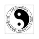 Return address rubber stamp featuring a yin yang symbol and your name and address in a modern sans-serif font.