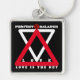 Keychain black with red and white graphics with Y-NOT-ME logo balanced on top of a triangle and with "PERFECT BALANCE L O V E LOVE IS THE KEY" and with Y-NOT-ME logo on the back. Love is an action word; it will fight against this corrosive greed that is so prevalent in the world. This horrible greed and racism are destroying our society and also our planet, both figuratively and literally.