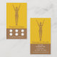 Yoga Business Card 6 Class Pass with yogi in mountain pose as a graphic. Card has a clean and modern design with a neutral brown and gold colour scheme. Yogi in mountain pose graphic has ornamental elements and heart graphic in middle. Back of card has 6 punch or stamp place holders to use a either a punch pass for rewards or to show amount of classes purchased. Fully customisable graphics, background, and information.