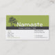 Yoga Business Card. Business Card Template has a grey yogi silhouette meditating under a tree graphic on front of card with a green and navy colour scheme. Back of card has space for a yoga quote or company tag line. Perfect for a yoga studio or instructor.