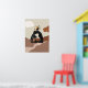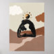 Black silhouette yoga position camel, or ustrasana, a figure poses on an abstract mountain road with fluffy clouds and yin/yang symbol circled with moon phases floats above the midsection. Give your yoga studio, gym or meditation space a fresh new look with minimalist Zen wall art.