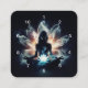 Modern Yoga Fitness Studio / Meditation Instructor / Personal Trainer / Life Coach / Healer / Reiki Master / Massage Therapy 10 Class Pass Loyalty Card Template - A woman is seated in Sukhasana, also known as the Easy Pose, which is a common posture for yoga and meditation. She is surrounded by an ethereal, swirling mist that emits a soft glow. The mist forms an abstract, flower-like shape around her. The mist and the flower symbolise her spiritual energy and connection to nature. The lotus flower is a sacred symbol in many religions and cultures, representing purity, enlightenment, rebirth, and beauty. The lotus flower is also connected to yoga and meditation, as it is often used as a seat for deities or a focal point for concentration. The white lotus flower in the image signifies her inner peace and harmony.
