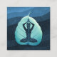 Yoga Fitness Studio / Meditation Instructor / Personal Trainer / Life Coach / Healer / Reiki Master / Massage Therapy Business Card Template - Modern Faux Light Teal Blue Green Gold Foil Bodhi Leaf Cutting as Yogi in Easy Seat pose / YOGA Easy Pose / Sukhasana Pose on Dark Blue Wave Pattern Grunge Background.