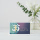 Yoga Instructor Business Card Template - Elegant Teal Turquoise Watercolor and Faux Gold Foil YOGA Meditation Tree Posture with OM Symbol on Purple Grunge Background.