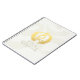 Yoga Studio Meditation Instructor / Life Coach / Healer / Reiki Master / Massage Therapy Notebook Template - Elegant Calligraphy Faux Gold Foil Yoga Meditation Easy Pose / Sukhasana Pose with ZEN Symbol on OM Symbol White Paper Background.