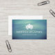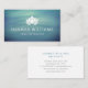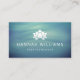 Elegant horizontal business cards for yoga studios, yoga instructors, spas or wellness professionals. This card features a white lotus flower over a subtle blue and green toned background with calming waves.