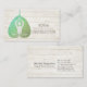 Yoga Studio Meditation Instructor / Life Coach / Healer / Reiki Master / Massage Therapy Business Card Template - Elegant Green Bodhi Leaf and and Yogi in Easy Seat pose / YOGA Easy Pose / Sukhasana Pose on on White Wood Background.