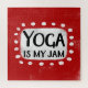 "Yoga Is My Jam" is a fun text design with a white accent shape surrounded by white whimsical textured dots.