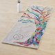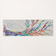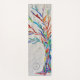This decorative yoga mat features a print of a rainbow coloured tree on a pale grey background.