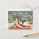 Cute vintage style postcard with a cat doing yoga and text "first yoga, then Christmas dinner".