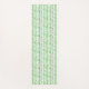 This yoga mat is shown with a green and white bamboo print design.