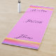 Elevate your yoga practice with this unique yoga mat featuring a serene blend of light pale pink, lavender, blended orange-yellow hues. Adorned with the inspiring cursive text 'Breathe, Stretch, Flow,' this mat is designed to bring calm and focus to your sessions. It's non-slip surface ensures stability, yet lightweight, making it easy to carry. Perfect for yogis seeking both style and functionality