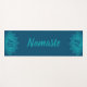 A yoga (exercise/workout) mat featuring the word "Namaste" in a light Eastern Blue against a darker Regal Blue background. At either end of the mat sits a lotus flower also in shades of Eastern Blue. There is a customisable text field for your initials which will appear in Regal Blue on two places on the mat - centred in each lotus flower. Mat is 72" x 24" and a comfy 0.25" thick. It contains a mesh centre membrane for added stability and is ECO-friendly: composed of cellular vinyl and free from harmful BPA, phthalates, and latex.