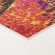 Tropical island scene with sun setting behind a small island with two palm trees (image replicated in mosaic pattern) Red and yellow sky above blue water. Two sail boats on either side of the island. Back is solid red. Original art by Deanna Pendrick.