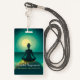 Yoga Meditation Pose on Rock Full Moon Stars Night ID Badge