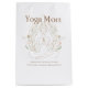 Elegant line art design featuring a meditating mother in lotus pose surrounded by delicate botanical elements and soft floral accents. The calming composition blends mindfulness, motherhood, and feminine balance with a refined yoga aesthetic. Ideal for those who connect with serenity, resilience, and inner strength through daily practice.