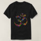 I give wanted to give this a 4 instead of a 5 because these Basic DARK T0shirts run unexpectedly SLIM or Narrow. Which is great if you do not have a potbelly, but I have a paunch. It isn't the shirt's fault that I've got a beer belly. The design and shirt itself is a quality cotton shirt. The color is more of a deep purple, but still a very pretty color. The Basic DARK T-shirts run a bit SLIMMER than the Basic Ts. The neck is a fraction narrower (or seems to be narrower) also. I'm a paunchy middle-aged woman and my neck is 12 inches (31cm) thick and the neckline fell about the same as in the photo of the man, and I had the desire to tug it a bit. So if you're a thick necked man or like loose shirts, be aware these are slimmer shirts. Once I get rid of my lockdown paunch it'll look great. The shirt washed well in cold water with no apparent bleeding. We don't have a dryer, so it hung dry. Did not shrink. Love the colors and the design. The design looks smaller on my shirt than it does on the model on-line. But still, it looks good on the shirt. The printing looks as it does on the model, just the size seems fractionally smaller. Washed garment in cold water, hung dry and design appeared unaffected.