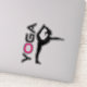 A vinyl decal with a simple design of a black silhouette of a woman performing a yoga pose.