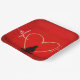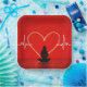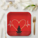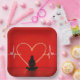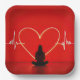 A silhouette of a woman sits cross-legged in front of a bright red background with a glowing heart shape and electrocardiogram lines