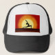 © Sunny Mars Designs - Yoga Sunrise Warrior Pose Silhouette Customisable Trucker Hats - Cool, unique, vibrant red and yellow custom yoga cap with the silhouette of a woman practicing yoga with the sunrise in the background. Concept for health, fitness, peace and tranquillity. Perfect for yogis, yoga instructors, yoga teachers, yoga lovers or yoga students.
