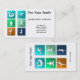 This business card is perfect for a yoga studio or anyone involved in the yoga business. It features six colourful squares with people doing yoga poses in them . All text is customisable.