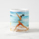 A serene watercolor design featuring a woman in a yoga Namaste pose by the ocean at sunrise, printed on a fine Bone China mug. The calm beach view, soft pastel tones, and graceful silhouette create a peaceful start to any morning. Perfect for those who love yoga, mindfulness, or a touch of coastal calm in their daily routine.