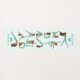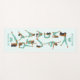 This design features yoga positions in brown and light green on a light blue background and customisable name.