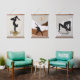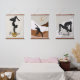 A trio of Zen meditation yoga poses and stretches in silhouette on a neutral colour story of grey, sand, gold and brown to match any decor. Spiritual yoga magic set inspired by mindful meditations and strong woman energy with affirmations of Namaste and Balance are perfect wall art for inspiration in your yoga gym or meditation space.