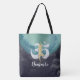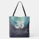 Yoga Mediation instructor Custom All-Over-Print Tote Bag Templates - Elegant Teal Turquoise Watercolor and Faux Gold Foil YOGA Meditation Tree Posture with OM Symbol on Black Grunge Background.