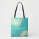 Elegant Watercolor Tree Yoga Mediation instructor Custom All-Over-Print Tote Bag Templates - Elegant Faux Gold Foil Floral Mandala Symbols on Teal Green and Turquoise Blue Background.