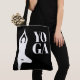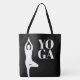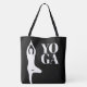 Yoga tree pose silhouette black tote bag. Custom tote bags for friends and family. Trendy shoulder bags for yoga lover, student, teacher, instructor, personal trainer, fitness fan etc. Double sided print with personalised text.