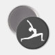 © Sunny Mars Designs - Yoga Silhouette White Profile Pose Custom Printed Round Fridge Magnets - This cool novelty customizable yoga refrigerator magnet features a vector illustration of a white silhouette of a woman practicing yoga against a light background. Concept for health, fitness, peace and tranquility. Perfect shirt for yogis, yoga instructors, yoga teachers, yoga lovers or yoga students. You can personalize it by adding your own name or details of your yoga studio or yoga classes.