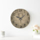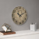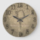 A yoga tree of life clock featuring a lady balancing on a yin yang with in tan and brown colors.