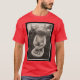 I give wanted to give this a 4 instead of a 5 because these Basic DARK T0shirts run unexpectedly SLIM or Narrow. Which is great if you do not have a potbelly, but I have a paunch. It isn't the shirt's fault that I've got a beer belly. The design and shirt itself is a quality cotton shirt. The color is more of a deep purple, but still a very pretty color. The Basic DARK T-shirts run a bit SLIMMER than the Basic Ts. The neck is a fraction narrower (or seems to be narrower) also. I'm a paunchy middle-aged woman and my neck is 12 inches (31cm) thick and the neckline fell about the same as in the photo of the man, and I had the desire to tug it a bit. So if you're a thick necked man or like loose shirts, be aware these are slimmer shirts. Once I get rid of my lockdown paunch it'll look great. The shirt washed well in cold water with no apparent bleeding. We don't have a dryer, so it hung dry. Did not shrink. Love the colors and the design. The design looks smaller on my shirt than it does on the model on-line. But still, it looks good on the shirt. The printing looks as it does on the model, just the size seems fractionally smaller. Washed garment in cold water, hung dry and design appeared unaffected.
