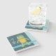 This coaster features a chibi, cartoon drawing of a kappa.  The kappa (河童), a turtle-like water imp, is one of the most famous and popular youkai in Japan.  Their most distinguishing characteristic is the shallow bowl of water in the top of their heads, which drains them of power if dried or spilled.  Kappa love cucumbers and are usually depicted as antagonistic towards humans, and are a general bogeyman creature used to keep children from swimming unattended.