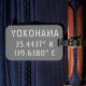 Modern, urban graphic features latitude and longitude coordinates of Yokohama, Japan. Great gift idea for those who love to travel or as a hometown memento.