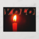 This postcards says "yolo" on it. Yolo means, you only live once.