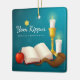 at christmass as a hanging decration for the chritmass tree.. its white porcline or cramic but very well made with added photo on one side.. also has a lovley red bag to keep it in.. execlent printed text in bold and black stands out well aganst the blue background of the photo.