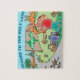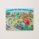 Puzzle features a full colour cartoon of hitch hiker holding a sign that reads "the Holy Land" across a map of Michigan's Upper Peninsula. Ideal for any U.P. lover who considers themselves a Yooper or native of Upper Michigan. Across the top of the finished puzzle, it reads: "Headed To The Holy Land"