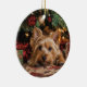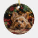 This adorable Christmas ornament, featuring a Yorkshire Terrier lying under a Christmas tree, is a wonderful gift for any Yorkie lover.