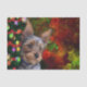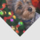 Young Yorkshire Terrier, or Yorkie, with a Christmas tree in the background dog lovers Christmas holiday tissue paper