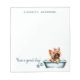 Cute dog watercolor illustration of a happy Yorkie dog in a bathtub. Great for dog lovers. Ready to be personalised with your name on top and the bottom says "Have a great day!" which can be changed if you want. Great for dog lovers, poodle owners, dog groomers, dog sitters, and veterinarians.