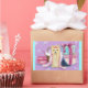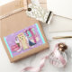 Cute little Yorkshire terrier painting by Greer. This yorkie is dressed in a pink boa and surrounded by hatboxes and purses. Fun for a dance bag, pet grooming supplies, school bag, etc. Great gift for yorkie lover.